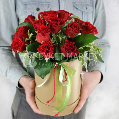Композиция в шляпной коробке из 15 красных розАртикул: B1672