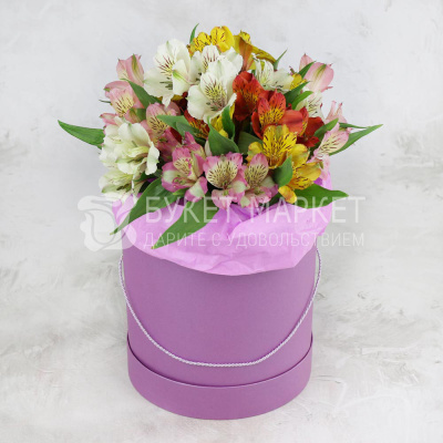 Композиция из разноцветных альстромерий в шляпной коробкеАртикул: B1575