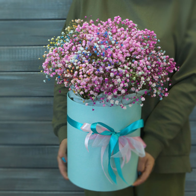 Разноцветная гипсофила в шляпной коробкеАртикул: B1685