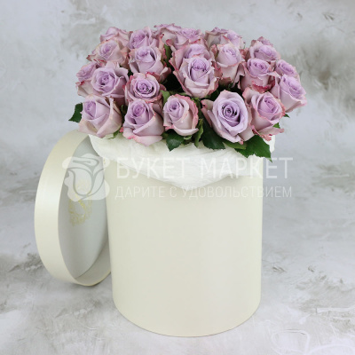 25 сиреневых роз в шляпной коробкеАртикул: R0033