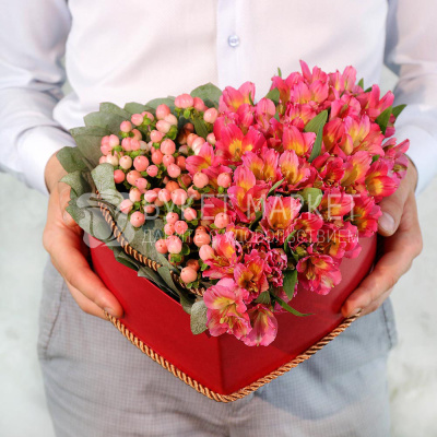 Композиция из альстромерий и гиперикумов в сердце 5 500 Р