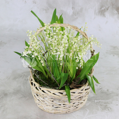 Корзина плетеная стандарт сред, Оазис кирпич, Ландыш (Конваллария), Мох платмос, Плёнка прозрачная