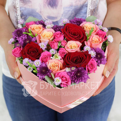 Композиция из роз, хризантем и астр в сердце 4 310 Р