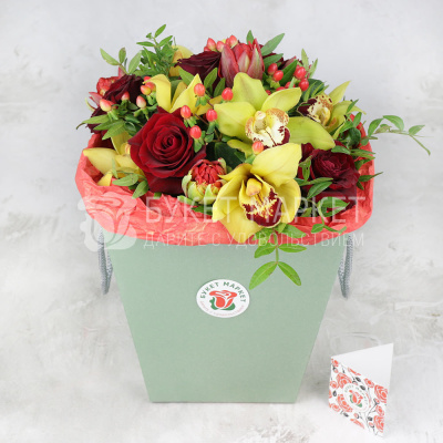 Композиция из орхидеи и роз в коробке 6 790 Р