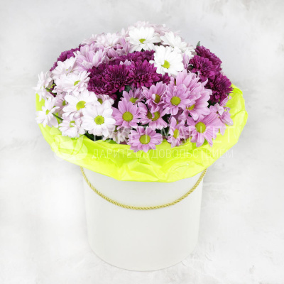 Композиция из разноцветных кустовых хризантем в шляпной коробке 6 000 Р