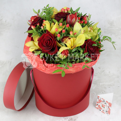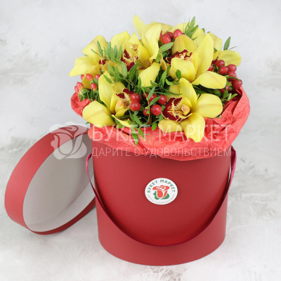 Композиция из орхидеи и гиперикума в шляпной коробке 7 500 Р