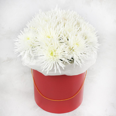 15 белых кустовых хризантем в красной шляпной коробке 6 250 Р