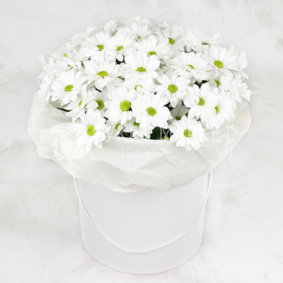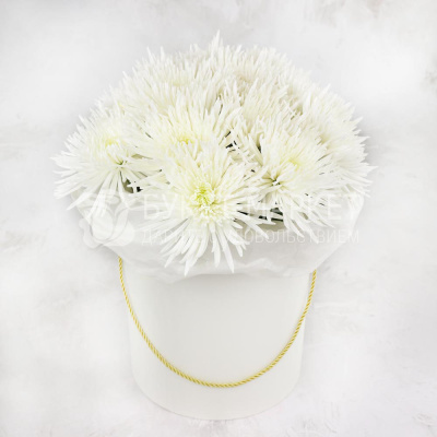 15 белых кустовых хризантем в шляпной коробке 6 150 Р