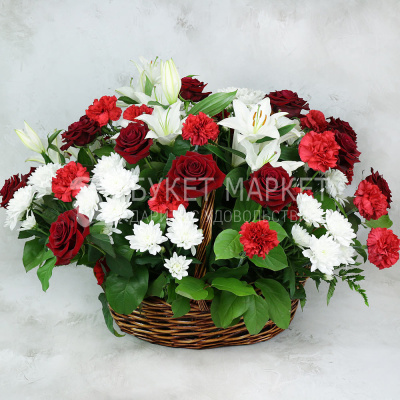Траурная корзина. Розы, лилия, гвоздика и хризантема 17 520 Р