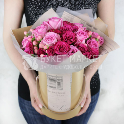 Композиция из розовых роз в шляпной коробке 7 280 Р
