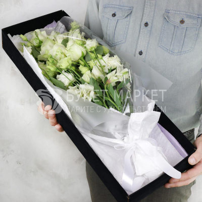 Композиция из роз и лизиантусов в бархатной коробке 6 810 Р