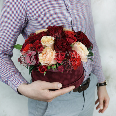 Композиция из роз и скимии в шляпной коробке 8 660 Р