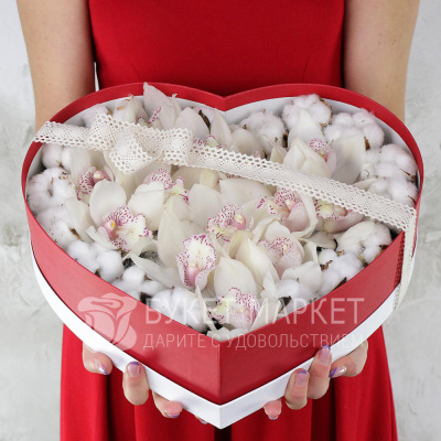 Композиция из орхидей и хлопка в сердце 10 740 Р