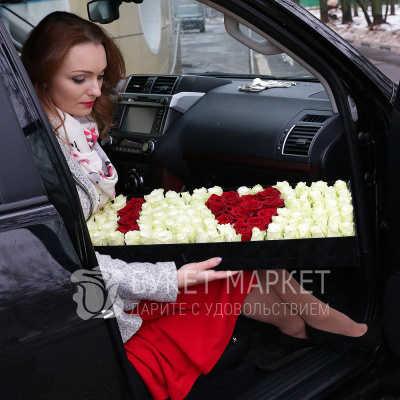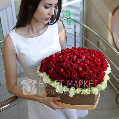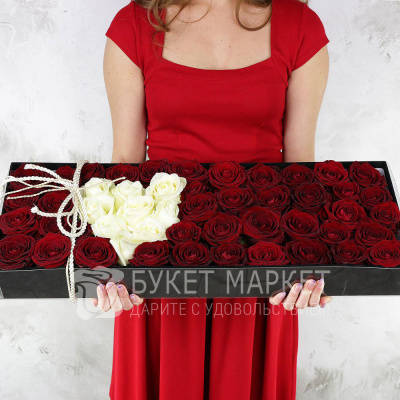 Композиция из белых и красных роз в бархатной коробке 12 840 Р