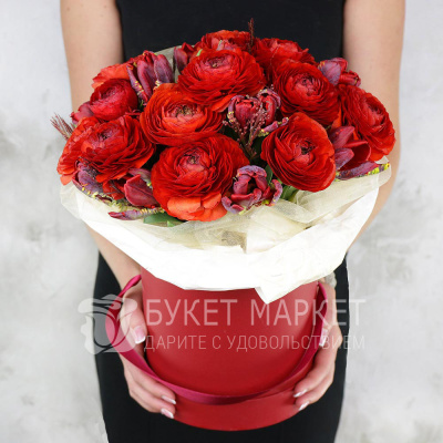 Яркая композиция из ранункулюсов и тюльпанов 9 520 Р