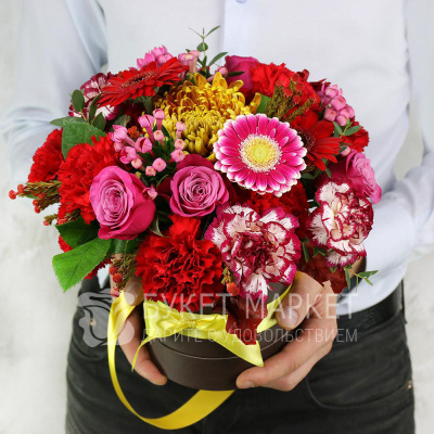 Композиция из гвоздик и гербер в шляпной коробке 6 970 Р
