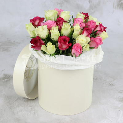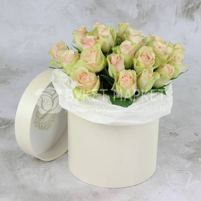 25 зелено-розовых роз в шляпной коробке 4 450 Р