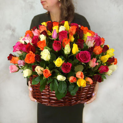 161 разноцветная роза в корзине 15 570 Р