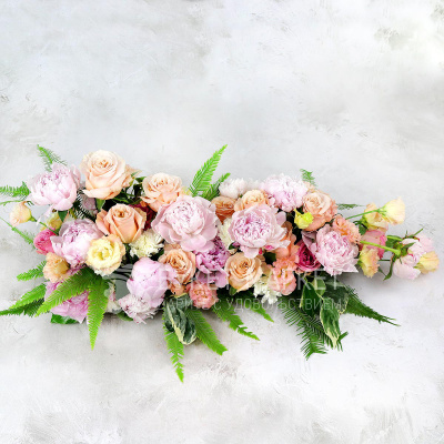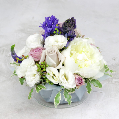 Настольная композиция из пионов, роз и гвоздик 14 540 Р