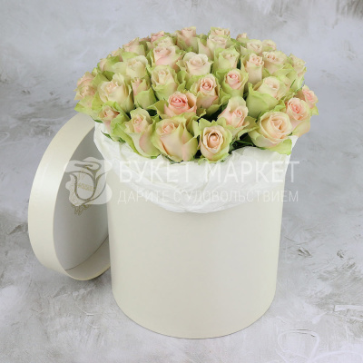 51 зелено-розовая роза в шляпной коробке 7 600 Р