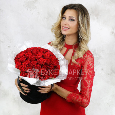 Букет из 51 красных роз в шляпной коробке 10 560 Р