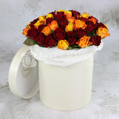 51 желтая и красная роза в шляпной коробке 6 170 Р