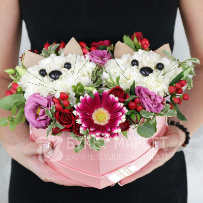 Композиция из гвоздик и роз - два котенка в сердце 6 580 Р
