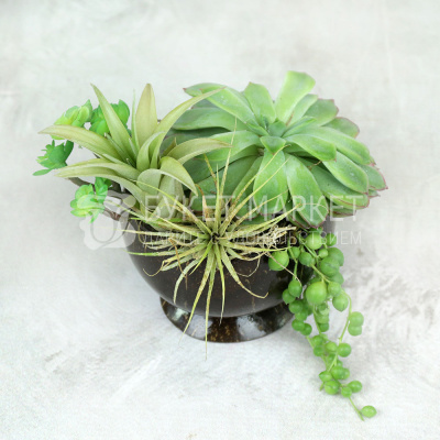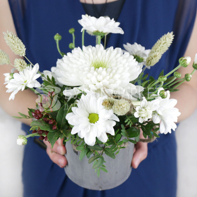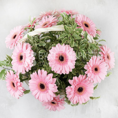 Композиция из минигербер и листьев питтоспорума в корзине 5 780 Р