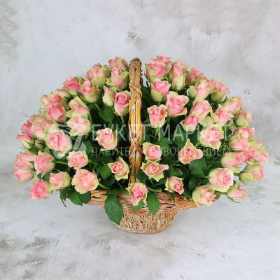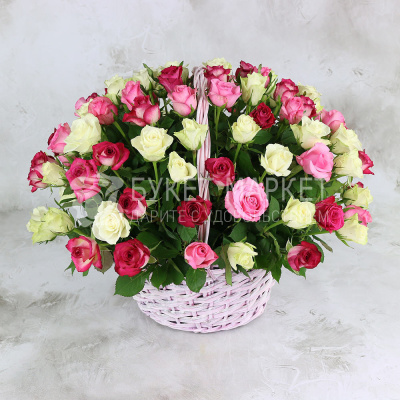 101 белая и розовая роза 40 см. в корзине 12 650 Р