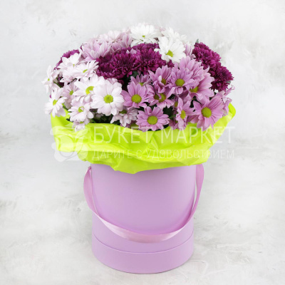 15 разноцветных кустовых хризантем в шляпной коробке 5 200 Р