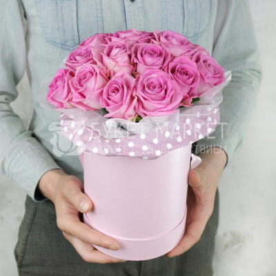 Композиция в шляпной коробке из 15 розовых роз 4 450 Р