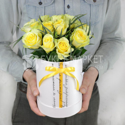 Композиция из 15 желтых роз и эвкалипта в шляпной коробке 5 090 Р