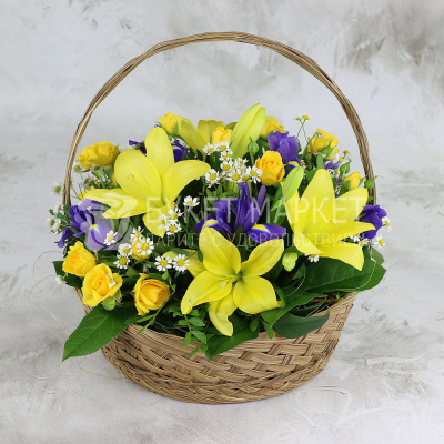 Корзина с розами, гвоздикой и фрезией 12 880 Р