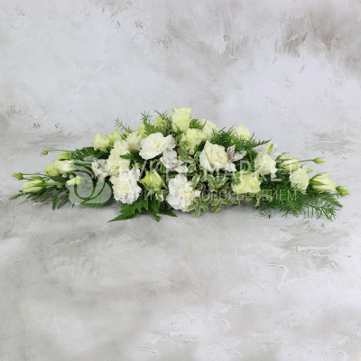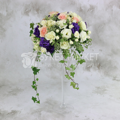 Настольная композиция из роз, гвоздик и лизиантуса 7 740 Р