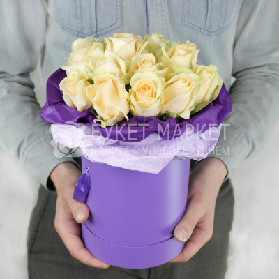 Композиция в шляпной коробке из 15 кремовых роз 4 360 Р