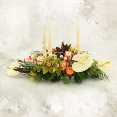 Праздничная настольная композиция с антуриумом и орхидеями 14 120 Р