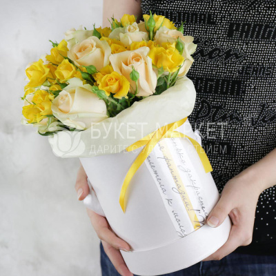 Композиция из желтых кустовых роз в шляпной коробке 5 160 Р